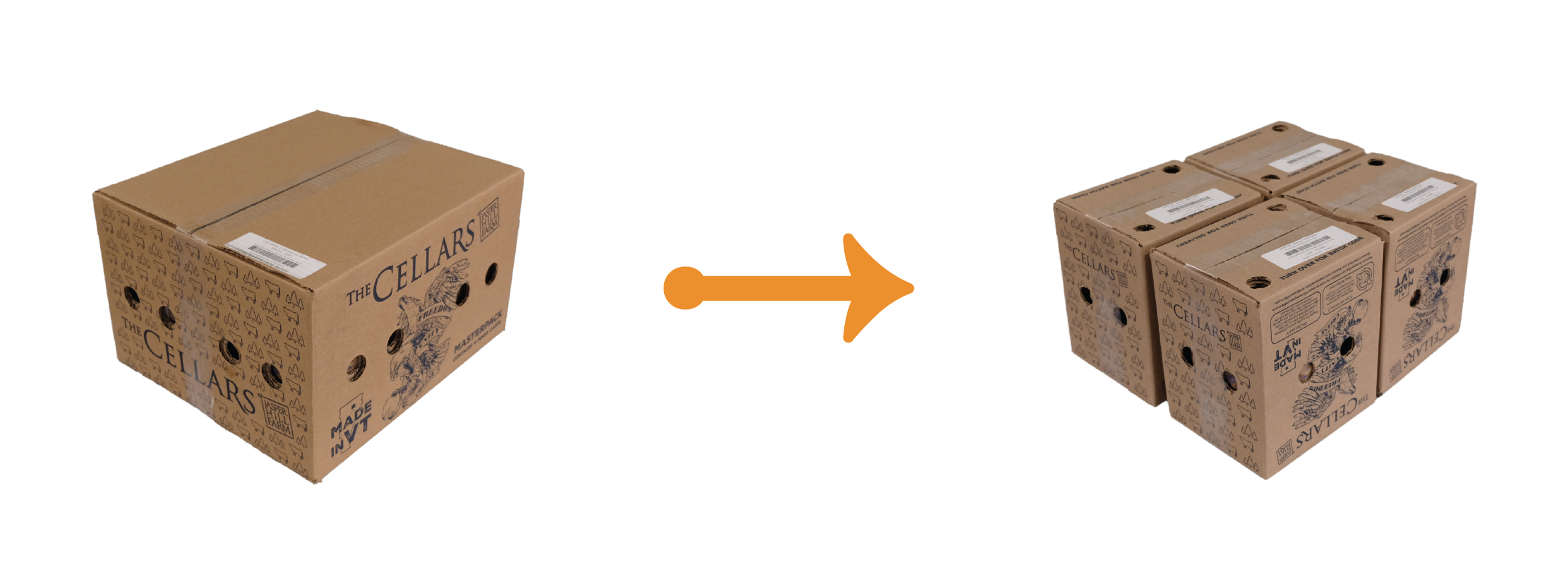 For years we have consolidated cases for our soft cheeses, Bayley Hazen Blue, and certain cut pieces of hard cheese into masterpacks. Masterpacks have contained 4 case units each for the aforementioned products. This was originally put in place to aid in our outbound shipping logistics, making it easier for our small team to move larger quantities of products when assembling pallets as well as contributing to their structural stability.